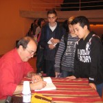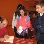 Deja en paz a los muertos mezcla aventuras, intriga, comunicaciones extrasensoriales, amor, amistad, relaciones familiares… todo expuesto con un vocabulario que, aunque coloquial, está salpicado de términos cultos, una sintaxis perfecta y pequeños golpes de humor inteligente. No es de extrañar que les gustara el libro, también los chicos saben distinguir dónde está la calidad. Y no es de extrañar que les gustara Juan Ramón Barat, cordial y amable con todos aun después de las dos horas que duró el acto pues, solícito, se quedó para que aquellos que quisieran se llevaran su libro firmado.