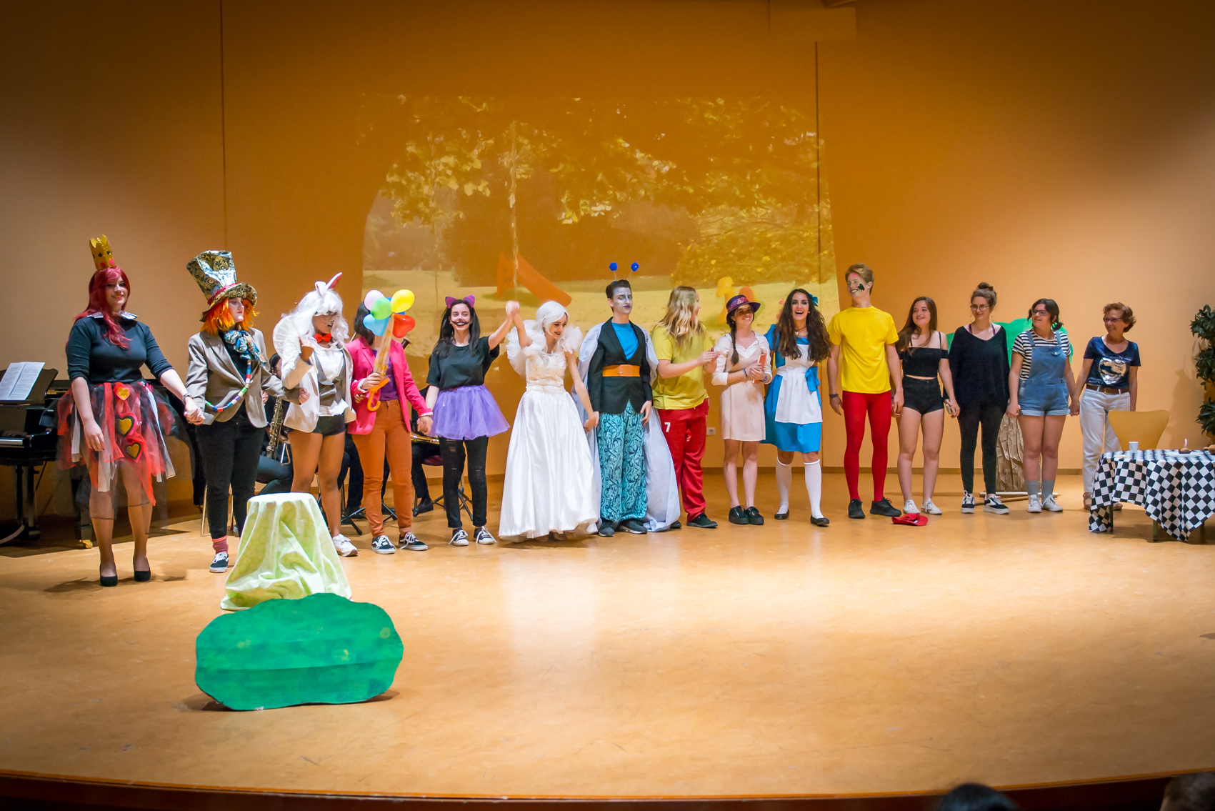 El pasado jueves, 7 de junio, los alumnos del IES. Ben Arabi, de 1º bachillerato de artes y musical, representaron en el salón de actos del Conservatorio una adaptación de Alicia en el país de las maravilla. Los asistentes fueron niños de Educación Primaria, pertenecientes a los colegios Cuatro Santos, Mastia y Ciudad Jardín. Tanto actores como público quedaron altamente satisfechos porque, ante todo, disfrutaron con la experiencia. Desde esta página el instituto Ben Arabí quiere felicitarlos a todos, a los niños por su saber estar durante toda la representación, a los profesores acompañantes por el esfuerzo que supone sacar de clase a los alumnos, y a la Compañía formada en B1AA-AP por haber utilizado parte de su tiempo libre en contribuir a que cada vez más la educación sea algo continuado y coherente entre los diversos centros por los que pasa cualquier persona durante su formación.
