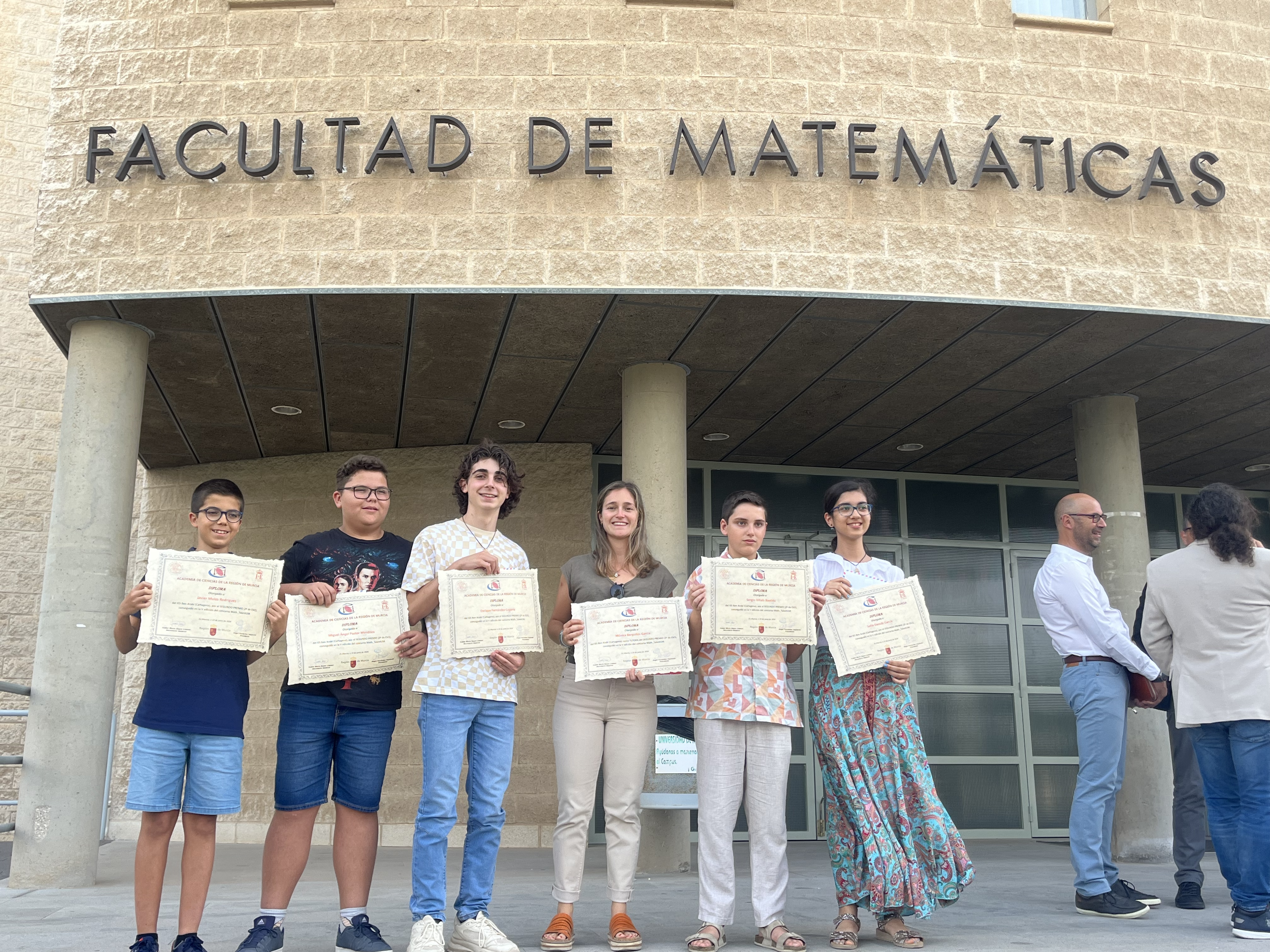 El pasado miércoles 19 de junio, los alumnos de la clase E2F del IES Ben Arabí, Sofía Daoubi, Enrique Fernández, Javier Mulas, Miguel Ángel Pastor y Sergio Viñals, recibieron el segundo premio en la 5ª Edición del Concurso Math TalentUM, dirigidos por la profesora Mónica Borgoñós, del dpto. de Matemáticas.