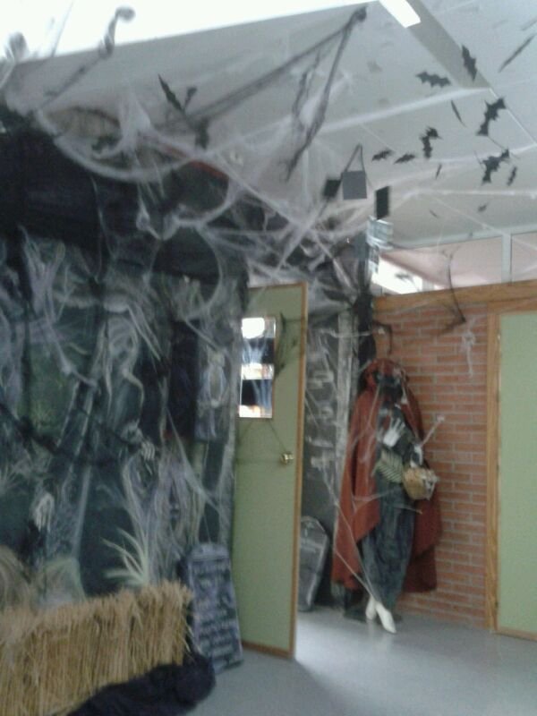 Los departamentos de Lengua y Dibujo han colaborado en el diseño de las mismas. Por un lado la biblioteca se decoró para la ocasión con una tenebrosa entrada en forma de gruta que daba paso a un interior decorado con una galería de imágenes y de textos literarios relacionados con el mundo del misterio.